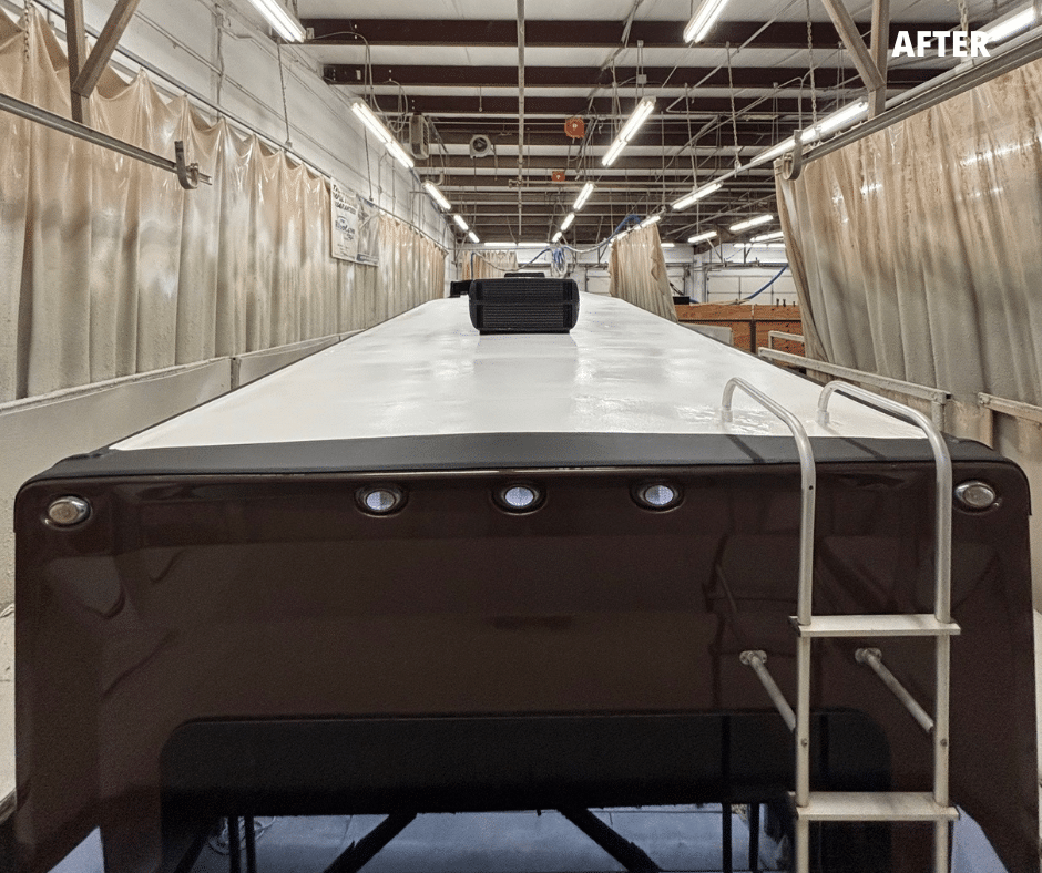 The RV received a seamless, spray-on FlexArmor roof with a lifetime no-leak warranty. Unlike traditional membranes, FlexArmor eliminates seams and ongoing maintenance concerns, providing long-term peace of mind.